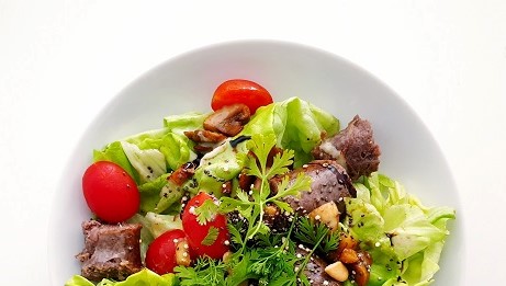Gemischter Salat, Wurst, Käse und Zwiebeln